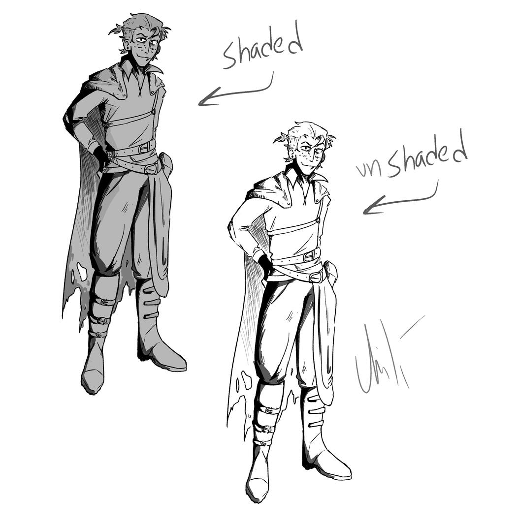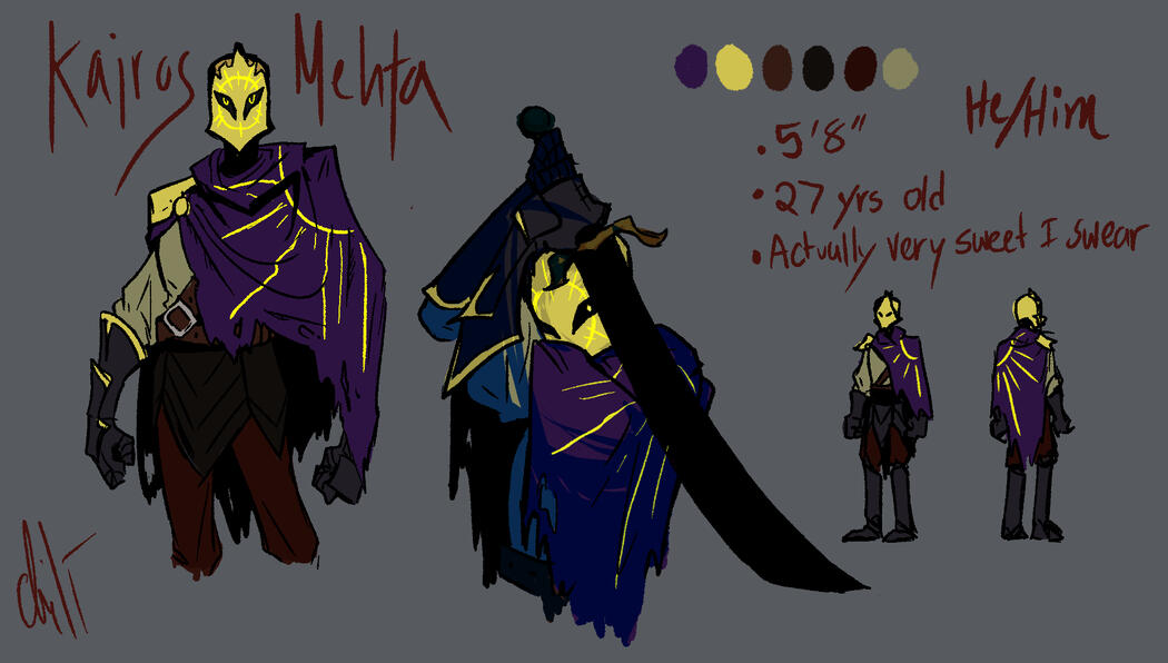 (includes front, back, and bust of one character along with information about them and a simple background)